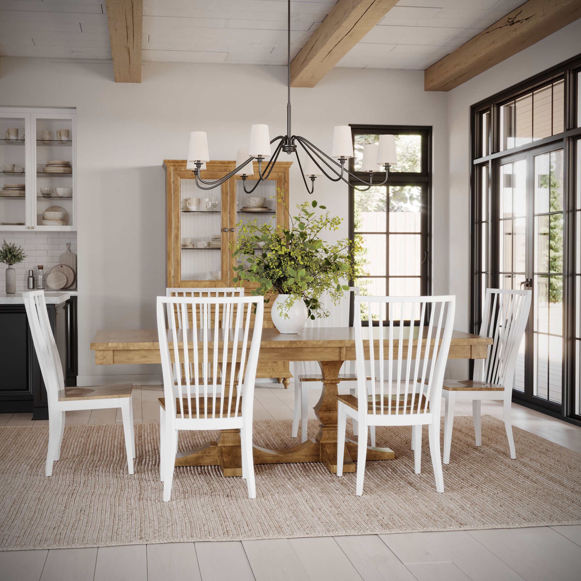 This elegant traditional-style double-base table will steal the show every time with the splendor of its legs crafted in solid wood.