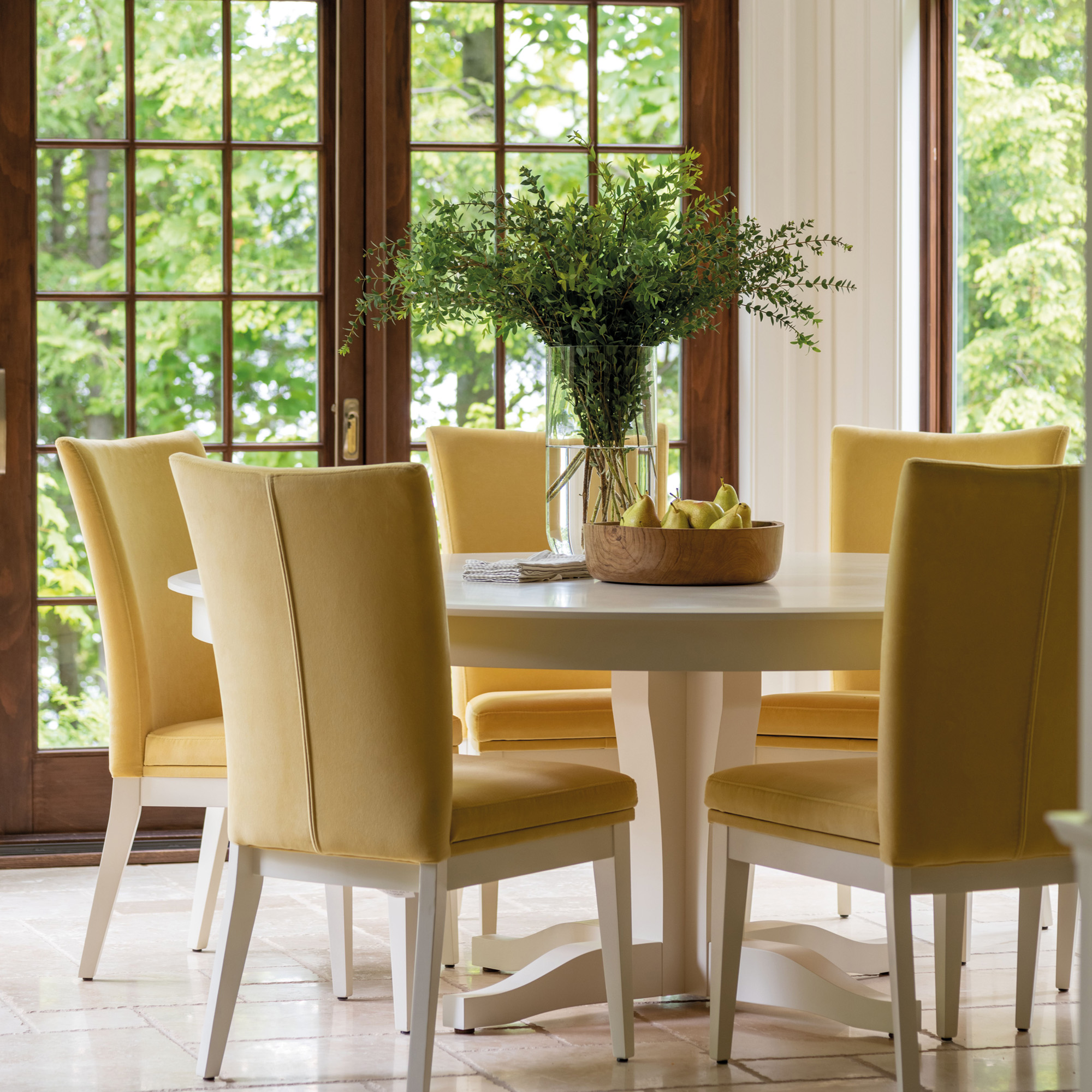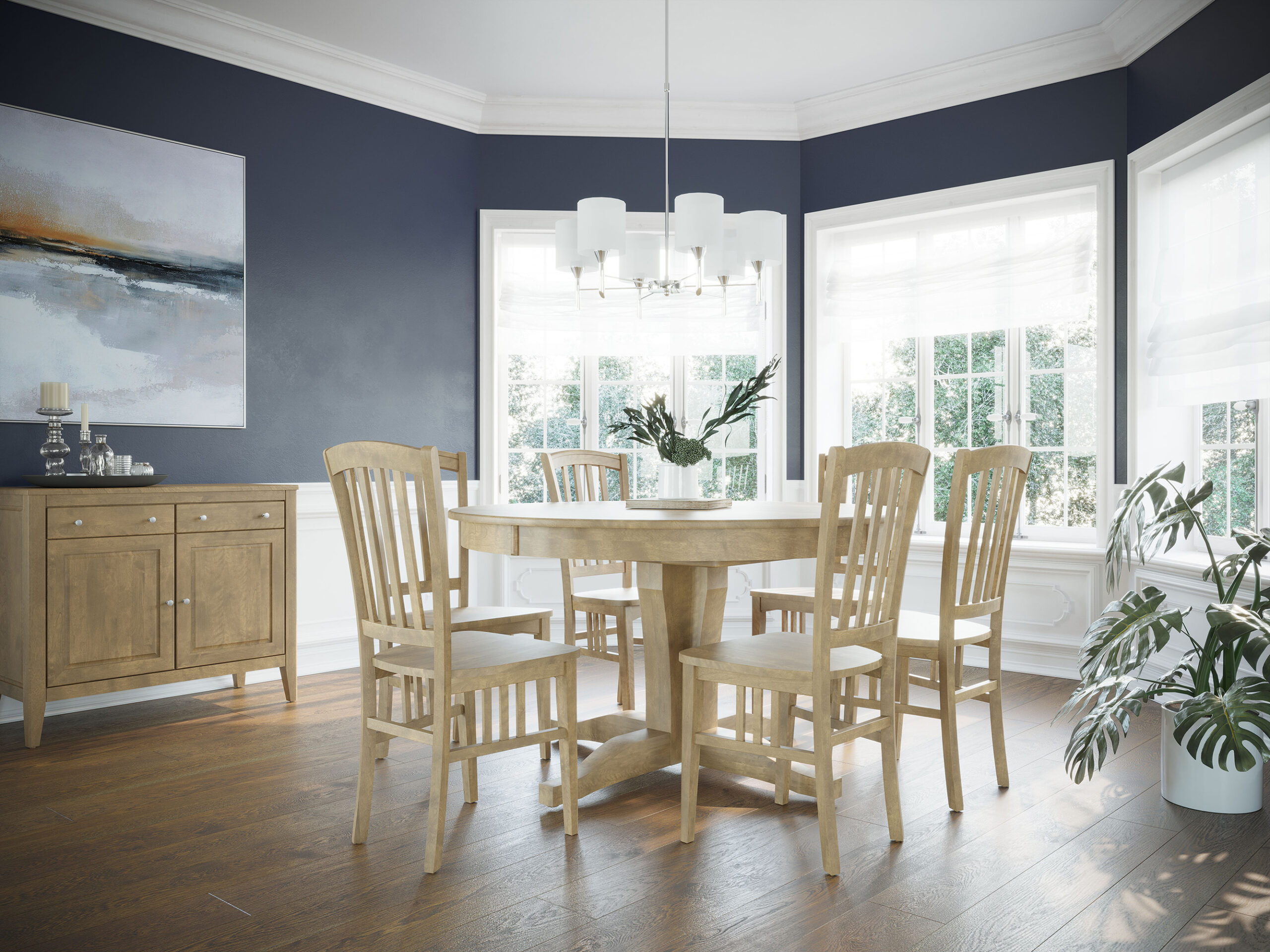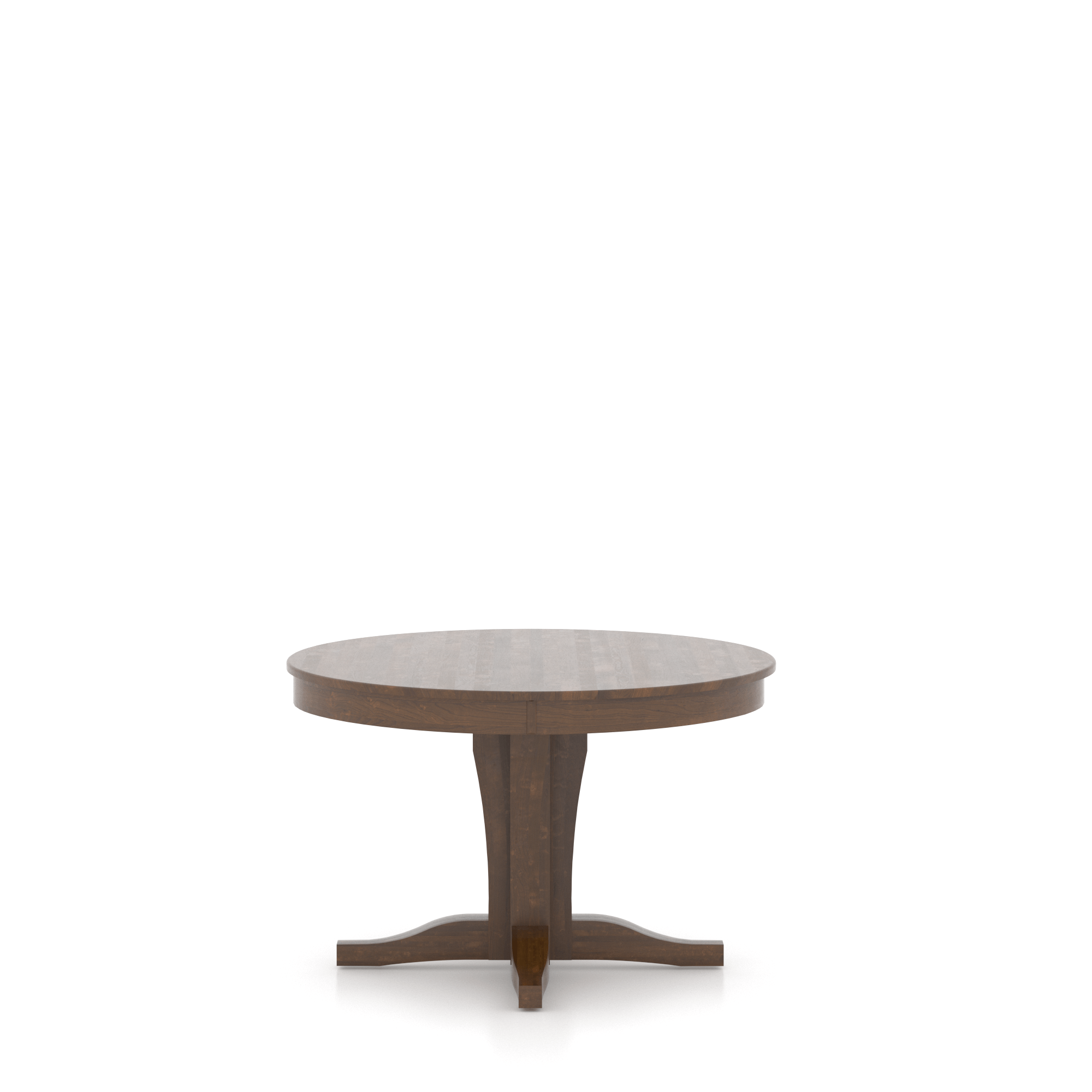 This classic round table with a wide, crafted base showcases the richness and character of solid wood.