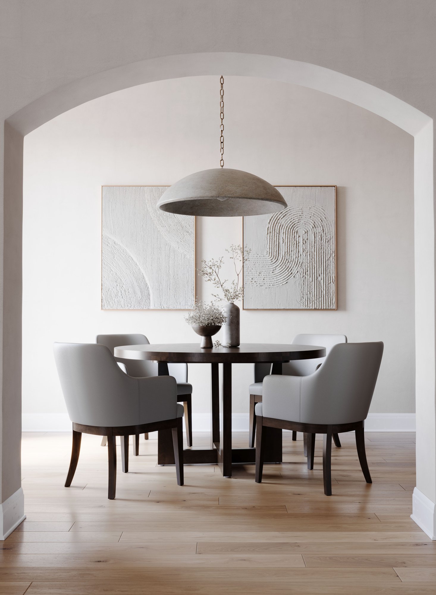 This modern upholstered dining chair is simply stunning. Its rounded shape, padding and integrated armrests offer unparalleled comfort, ideal for long meals or moments of relaxation. Its sleek and trendy look blends perfectly in a modern, contemporary or transitional decor.