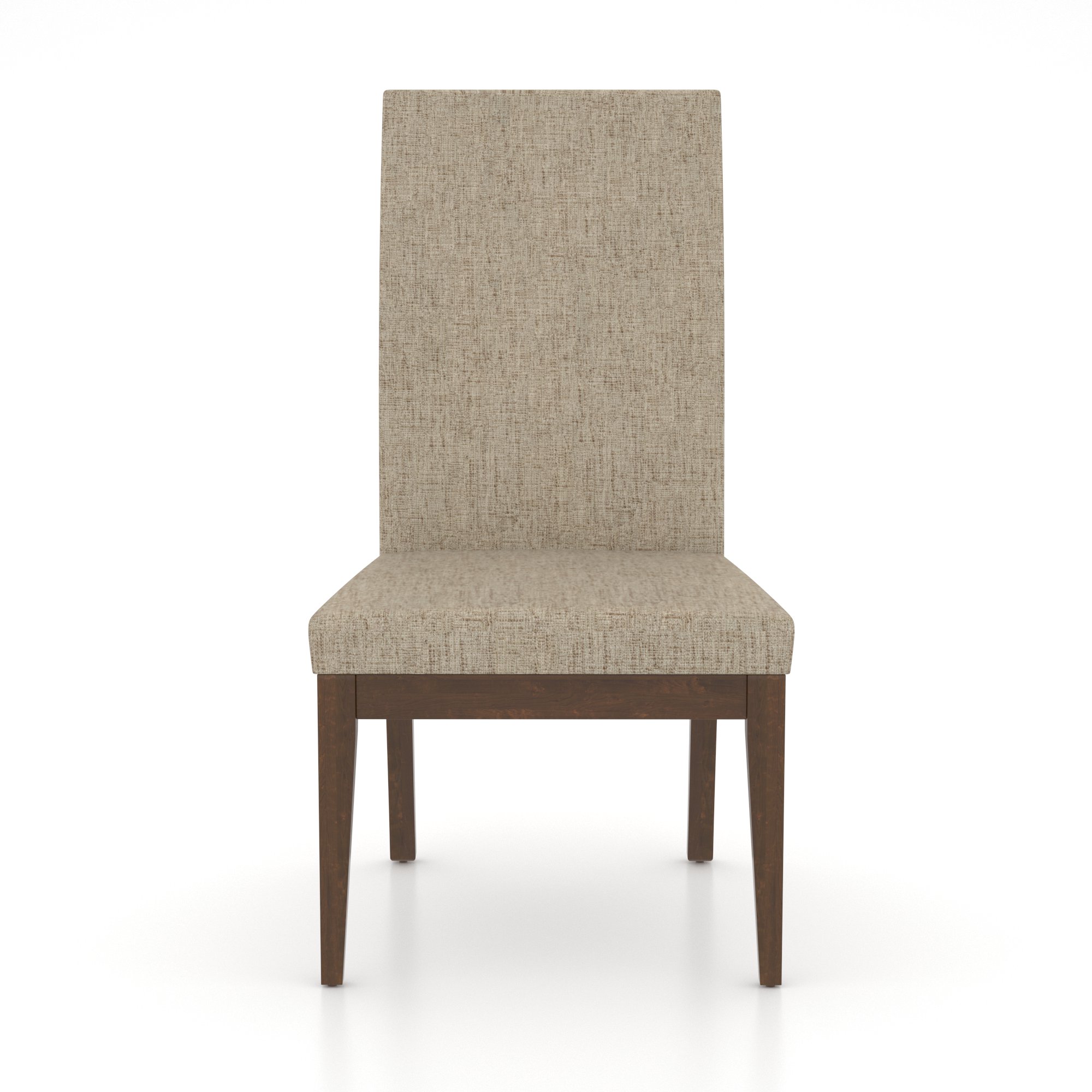 The perfect balance between comfort and a sleek design. This upholstered chair, with its straight, modern lines, blends harmoniously into all types of decors whether contemporary or classic. Made from solid wood and upholstered in the fabric of your choice, it combines elegance and durability.