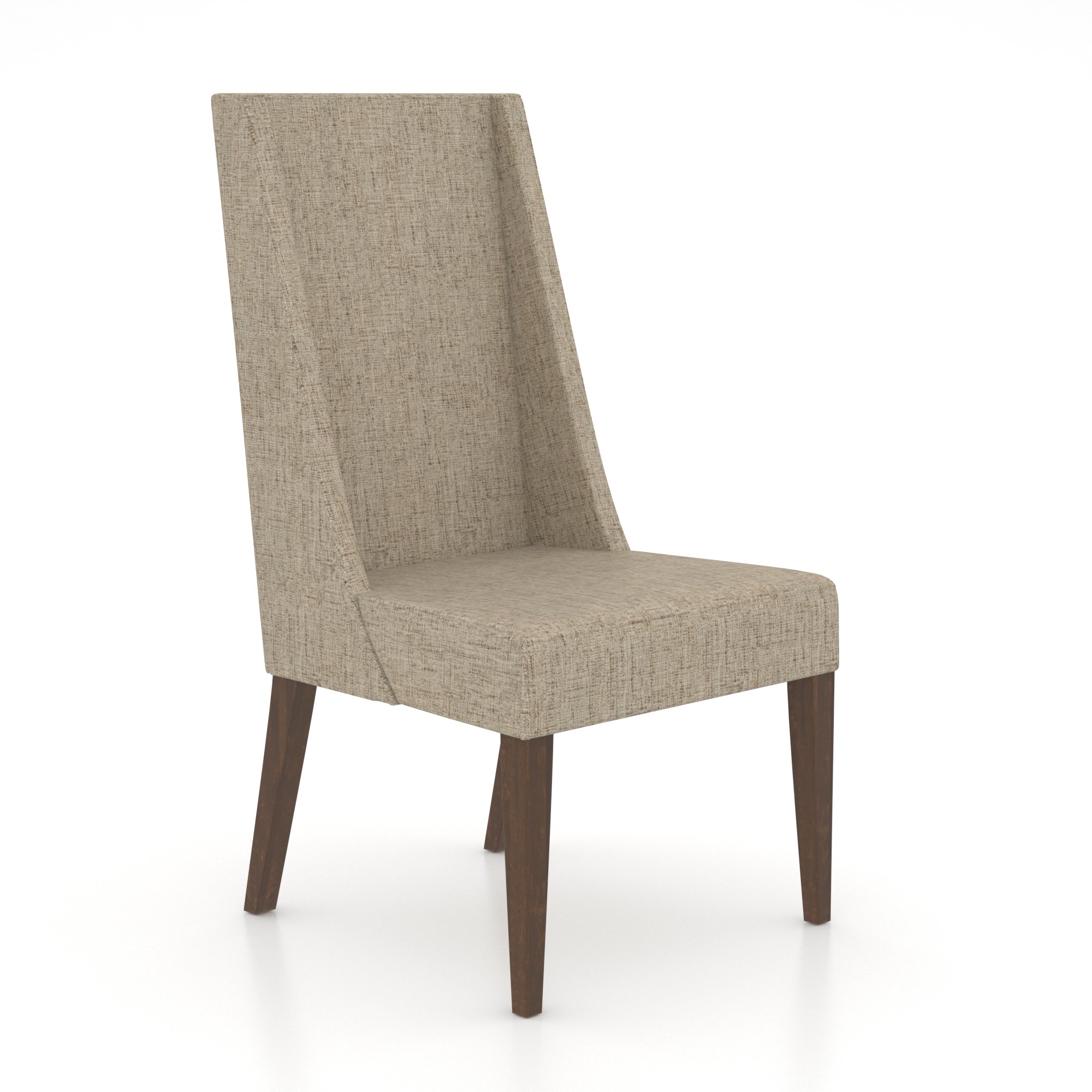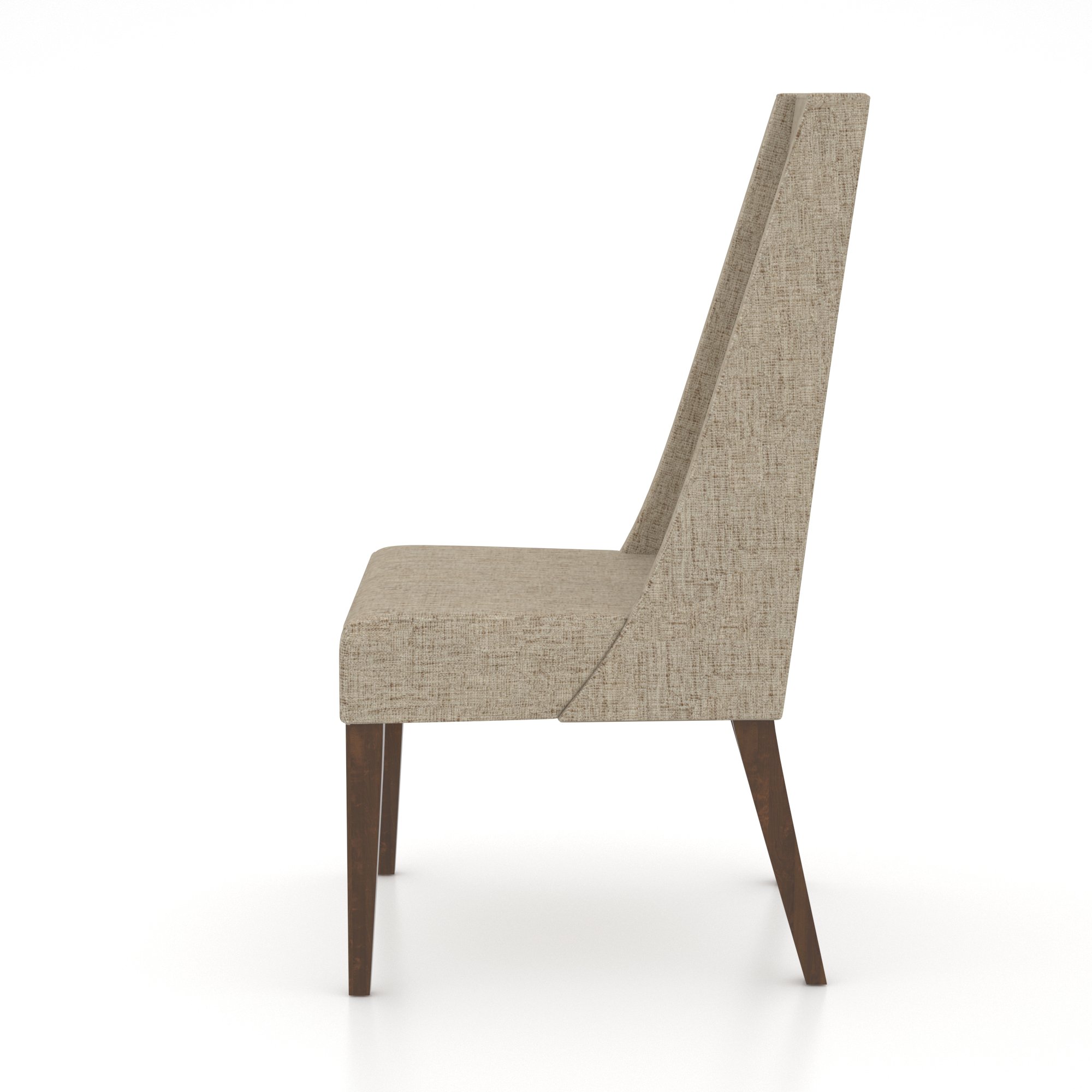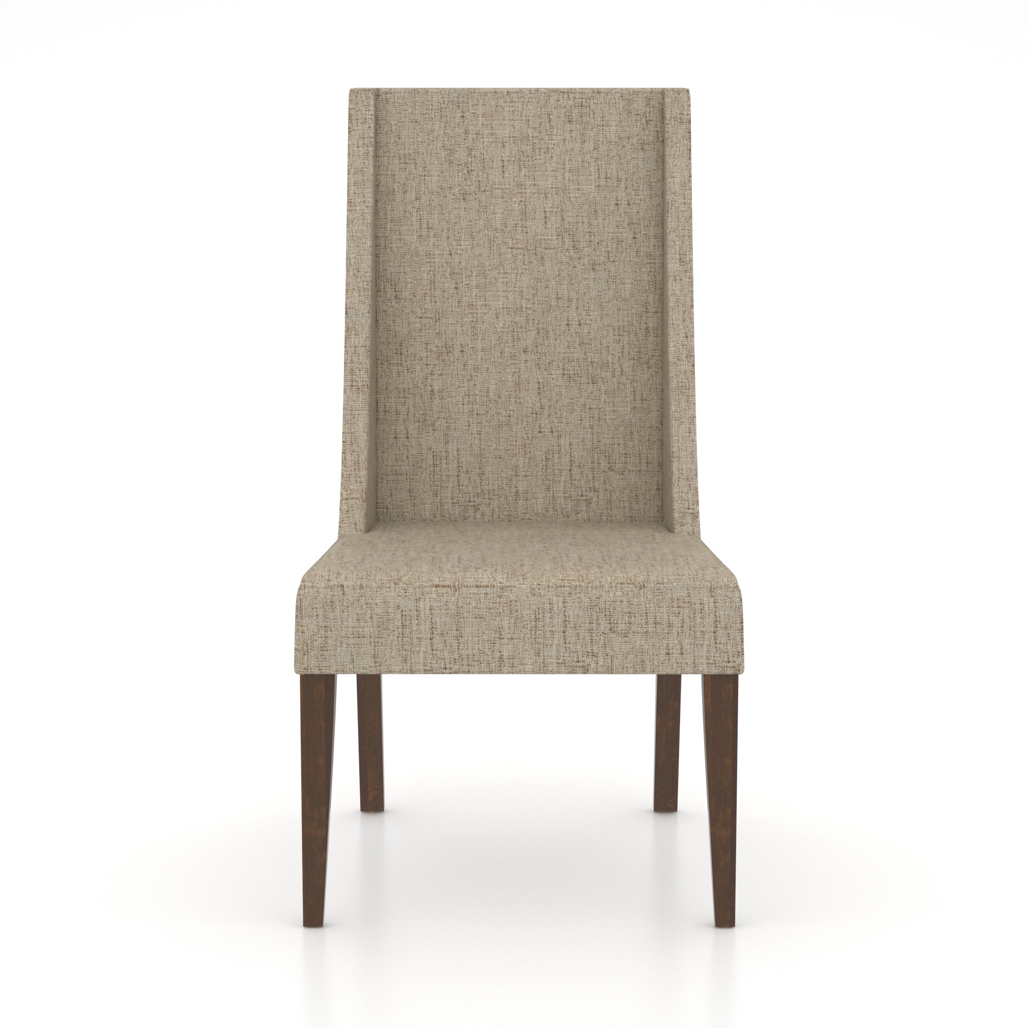 This upholstered dining chair is both elegant and timeless. Its high, straight backrest with folded sides gives it a sophisticated and refined look. Ideal for a classic or transitional decor, it will add a touch of luxury and comfort to your home.