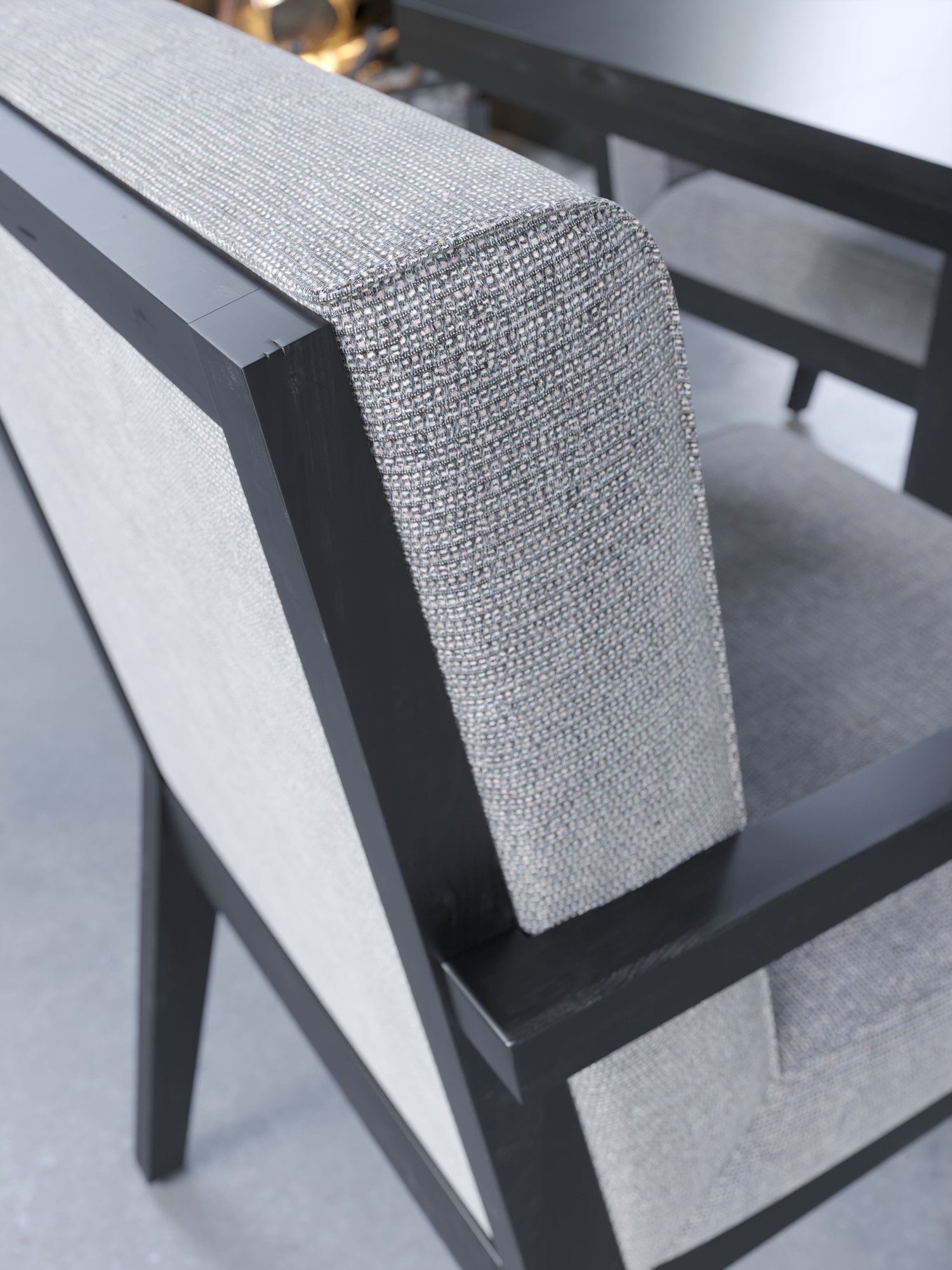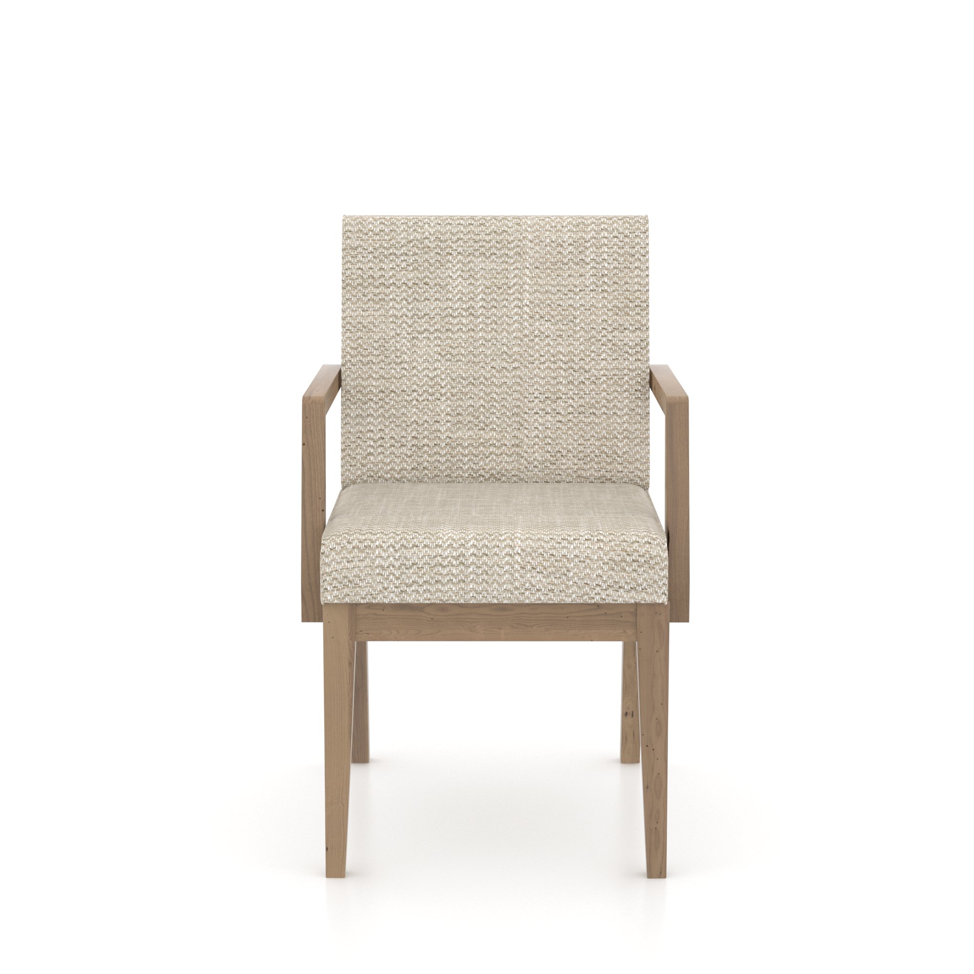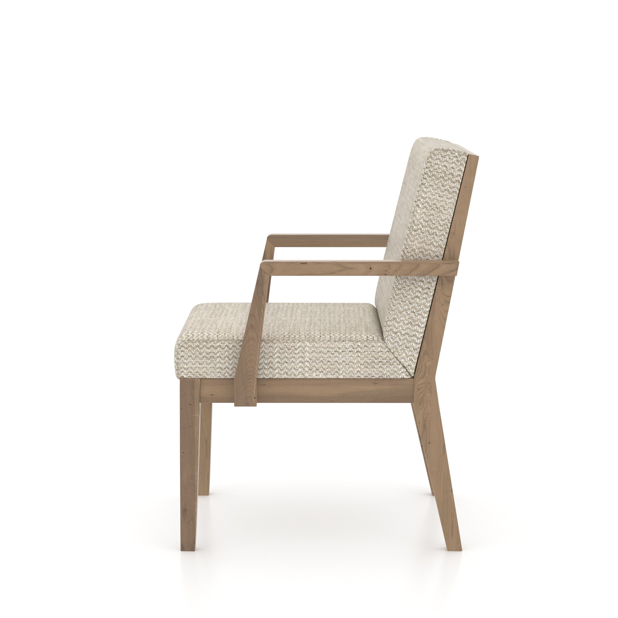 This modern, rustic wood-finish chair is as comfortable as it is versatile. Its quality design and timeless look will be sure to please. Available with and without arms, this model is a statement piece.
