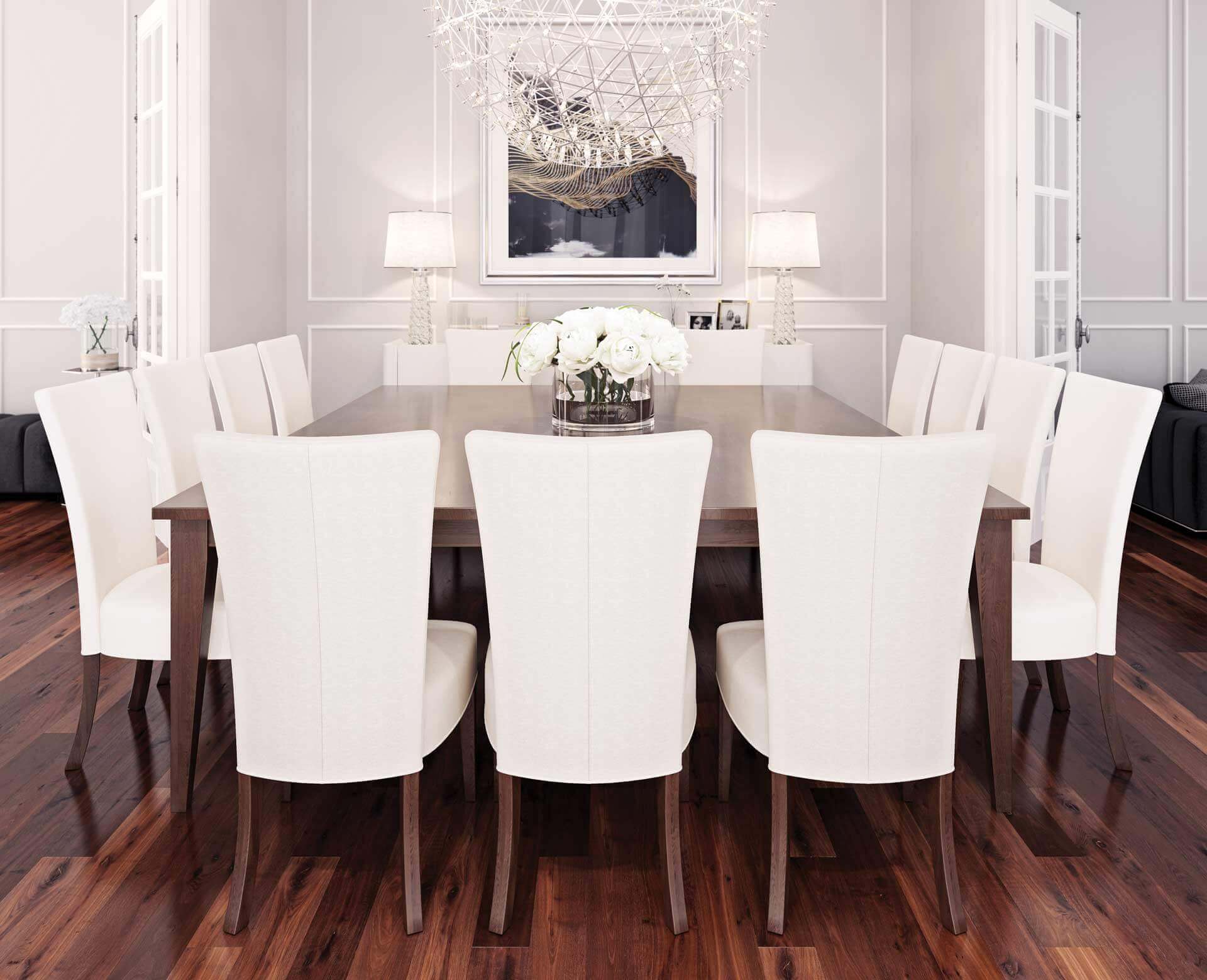 Canadel can build your one-of-a kind extra long and extra wide table and also offer customizable finishes and fabric choices.