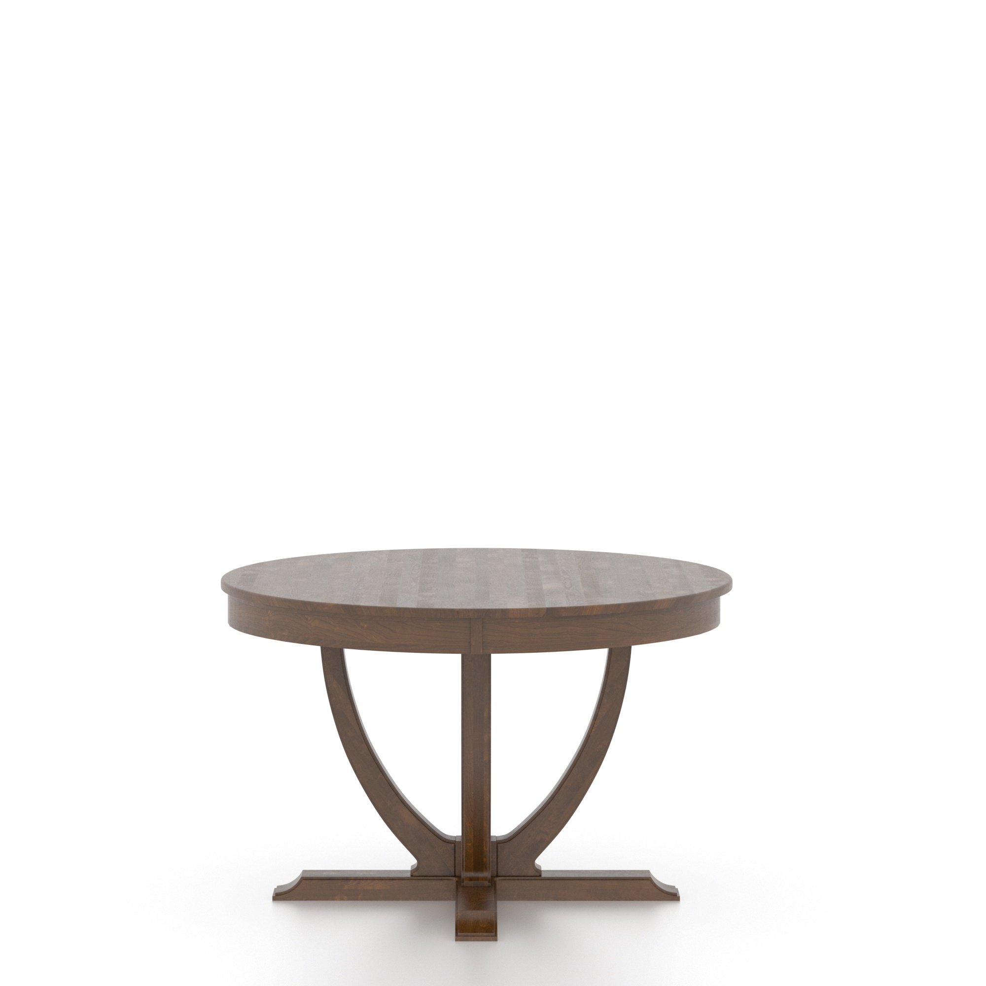 This round, uniquely designed wood table perfectly embodies the refined, sophisticated look of classic and transitional styles. Its rounded base adds character while integrating gracefully into any decor. Designed to stand the test of time, this table will become the centerpiece of your dining room.
