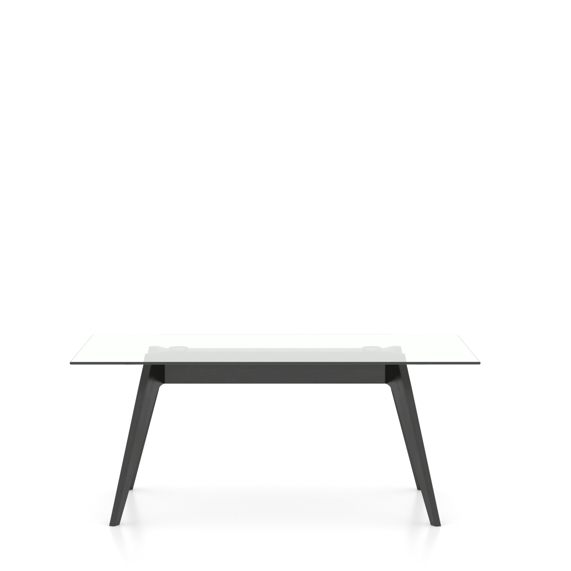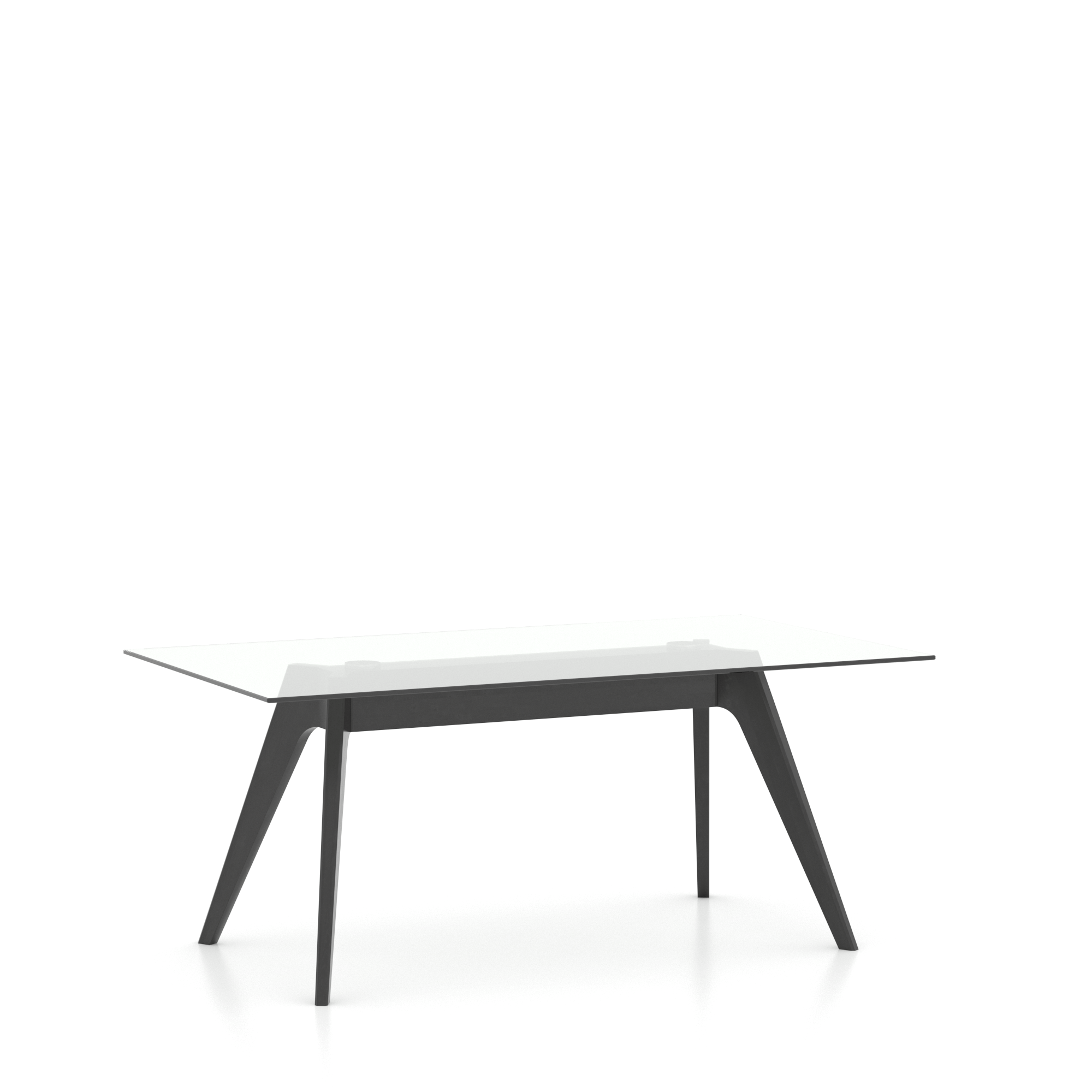 This beautiful round or rectangular table features clean, modern lines that will add unparalleled elegance to your dining room. A high-quality glass top seems to float on these stunningly angled solid wood legs.