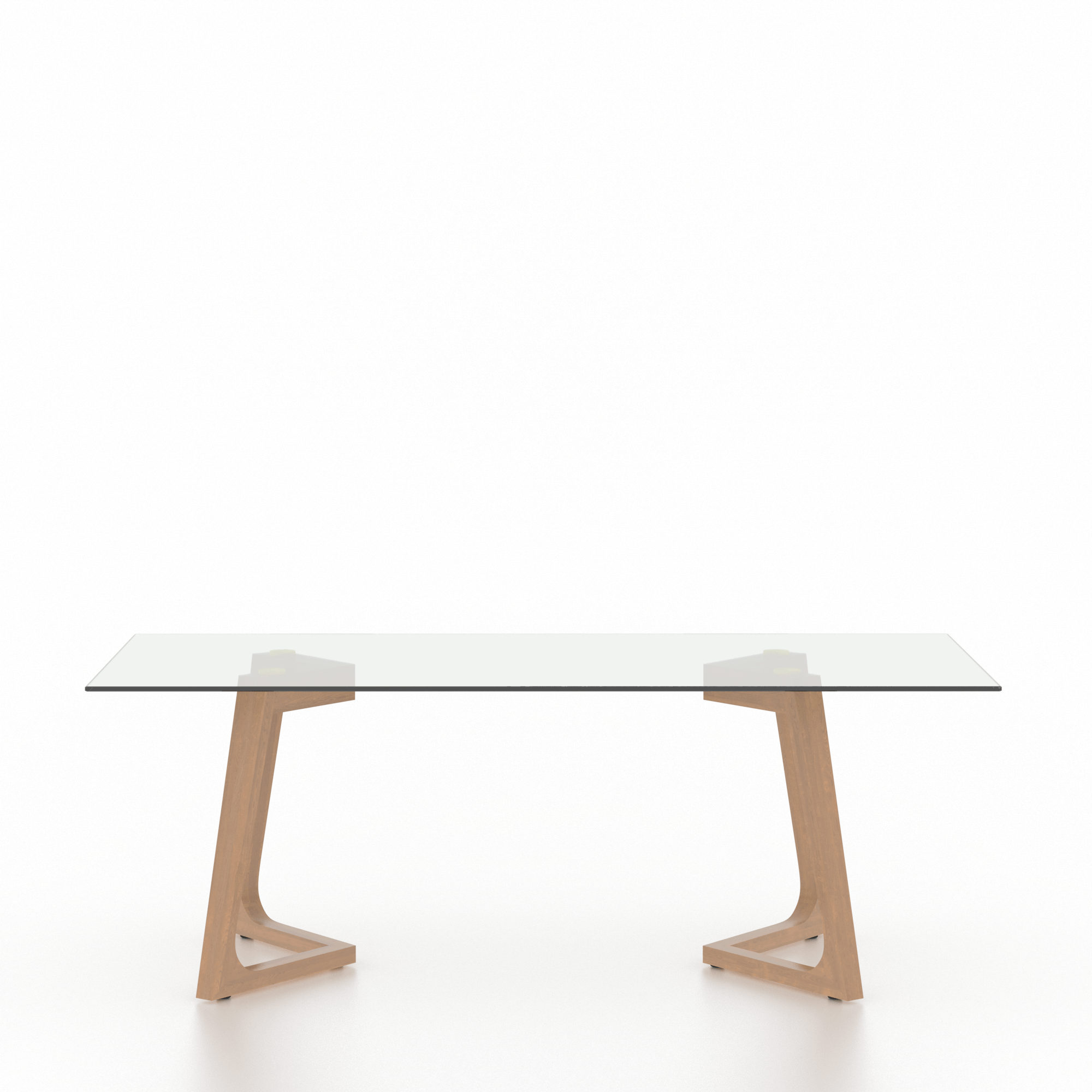 This gorgeous glass-top rectangular table with its impressively crafted wood legs will bring a modern touch to your dining room decor. You can even adapt this model to your interior by selecting the color of the metal accents. Two beautiful options are available: gold or silver.